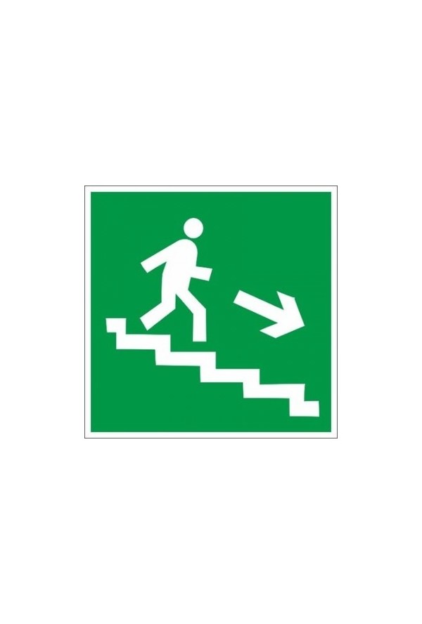 Фотолюминесцентный знак Направление к эвакуационному выходу по лестнице вниз (правосторонний) - элемент системы ФЭС. Размер 200x200.