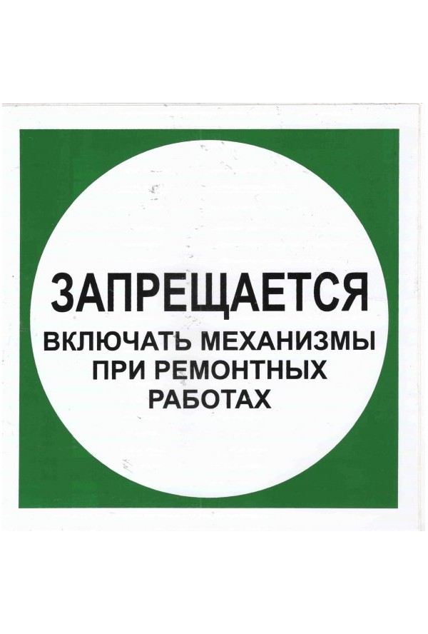 Плёнка (В 22) Запрещается включать механизмы при ремонтных работах