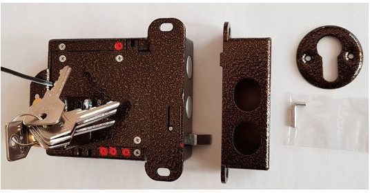 Полис-11-03 - электромеханический накладной, закрытого типа замок с отсутствием механического открывания изнутри (снаружи - открывание с помощью ключа), без блокировки замка от закрывания предназначен для надежного запирания дверей, ворот и калиток с возможностью их дистанционного открывания, в том числе для работы совместно с аудио, видеодомофонами и кодовыми панелями.