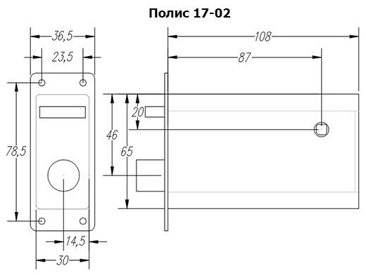 Полис-17-02 - электромеханический врезной, закрытого типа замок с механической клавишей открывания изнутри (снаружи - механическое открывание не предусмотрено), без блокировки замка от закрывания предназначен для надежного запирания дверей, ворот и калиток с возможностью их дистанционного открывания, в том числе для работы совместно с аудио, видеодомофонами и кодовыми панелями.