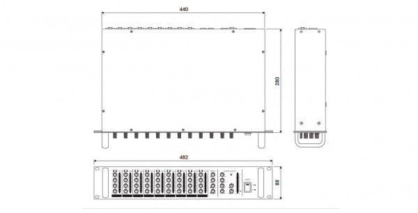 Для этого предусмотрены 9 микрофонных входа (XLR), 9 аудио (RCA, Jack 6,3 мм), 2 приоритетных линейных входа, а также 2 универсальных входа с возможностью установки для них приоритета.