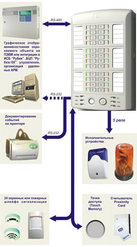 Прибор приёмно-контрольный охранно-пожарный “Р-020” (24 универсальных ШС, 5 реле управления, 500 пользователей, Touch Memory, точка доступа, RS-232, RS-485. Встроенный ИБП, БП (2*12В, 9Ач)