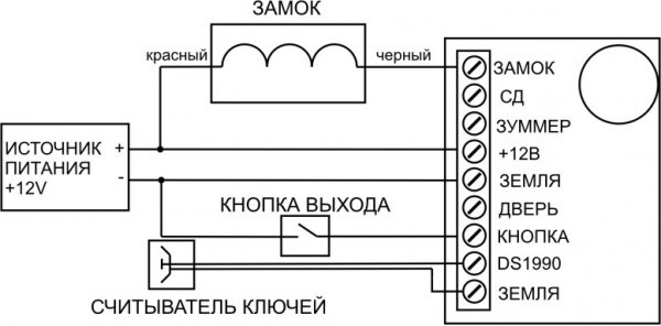Для работы замка необходим источник питания и контроллер СКУД.
