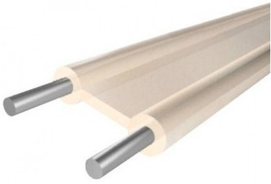 Провод трансляционный с двумя стальными жилами диаметром 0,6 мм, уложенный в одной плоскости с изоляцией из светостабилизированного полиэтилена , с плоским разделительным основанием.