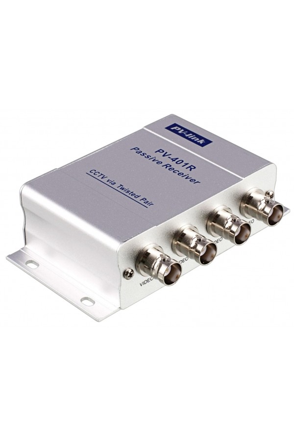 Приёмо/передатчик видеосигнала. 4х канальный пассивный Макс. дистанция передачи данных Ч/б - 600м, Цв - 400м