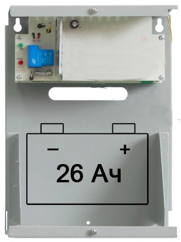 12В, 10А корпус под АКБ 26 Ач, защита АКБ, защита выхода от КЗ и перегрузки