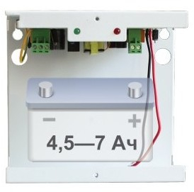 12 В, 2 А. Металлический корпус под АКБ 7 А/ч, защита АКБ, выхода от КЗ и перегрузки.