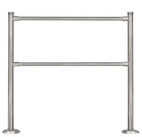 Комплект состоит из двух двухуровневых односторонних стационарных хромированных стоек ОС1 ХРОМ, двух горизонтальных перемычек длиной до 1000 мм диаметром 25 мм.