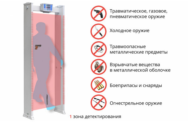 PC-Z-1 - стационарный арочный металлодетектор имеет 1 (одну) зону детектирования и предназначен для использования в учебных учреждениях, детских садах, кинотеатрах, музеях, цирках, магазинах и т.д.
