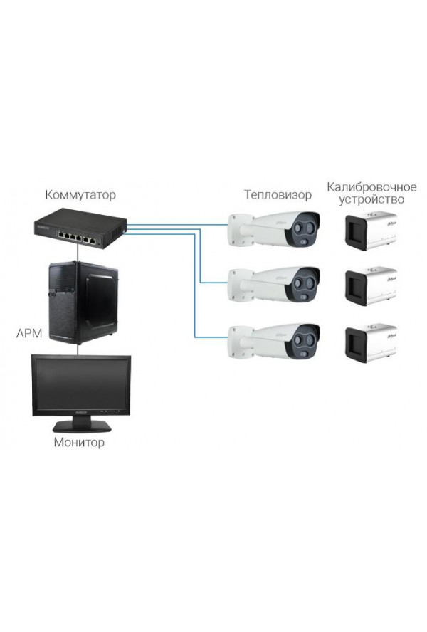 Тепловизоры, калибровочные устройства, штативы, адаптеры к штативам, кабели, коммутатор, рабочая станция с ПО RVi Оператор с HDD, лицензии для Оператора , монитор.