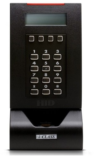 iCLASS бесконтактный считыватель смарт карт, совмещенный с клавиатурой, LCD дисплеем, встроенным считывателем отпечатка пальца, чтение/запись данных, дистанция - 20 см, выходной интерфейс - Wiegand/RS-232/RS-485/USB.