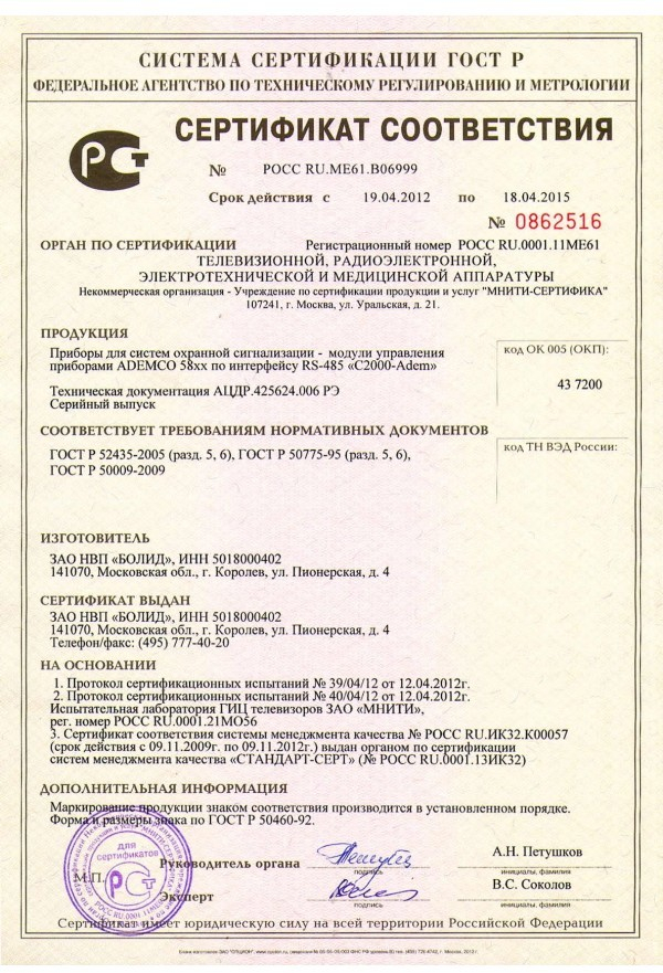 Модуль для передачи извещений от радиоканальных извещателей Ademco 58xx на пульт С2000М или компьютер по интерфейсу RS-485. Подключается к приемнику Ademco 5881, 5882 (до 7 шт.) или трансиверу 5883 (в версии 1.00 только на приём) (до 2 шт.).