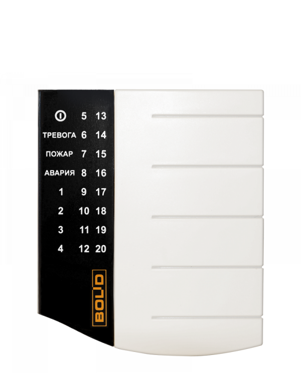 Пульт и клавиатура со светодиодными индикаторами на 20 охранных или пожарных зон