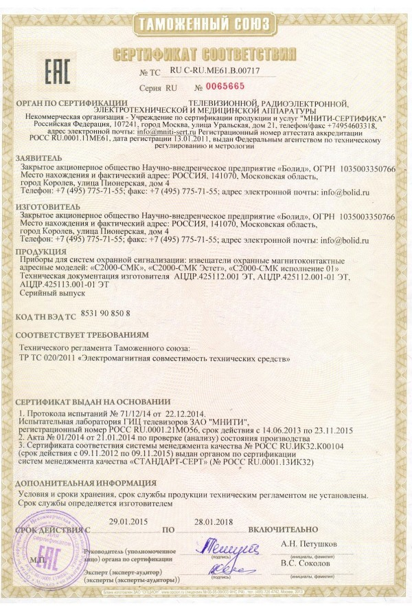 Извещатели применяются с контроллерами "С2000-КДЛ", "С2000-КДЛ-2И", "С2000-КДЛ-2И исп.01", "С2000-КДЛ-С".