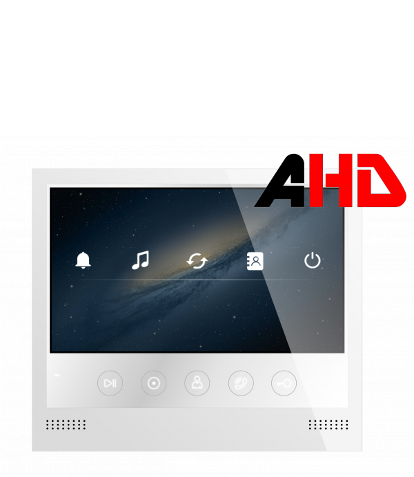 Selina HD - монитор цветного видеодомофона 7 дюймов с емкостным сенсорным экраном с поддержкой форматов CVBS, HD, FullHD, удаленное управление дополнительным замком или воротами, подключенным к вызывным панелям.