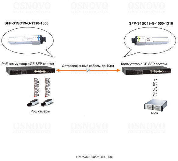 Работает в паре с SFP-S1SC19-G-1550-1310.