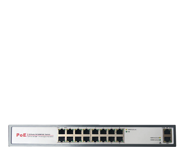 Неуправляемый PoE коммутатор 10/100Base-TX, RJ-45 Auto-MDI/MDI-X, 16 PoE портов + 2 UpLink порта, стандарт PoE IEEE 802.3af, выходная мощность на порт макс. 15,4 Вт, 46-52 В DC, общая мощность макс. 96 Вт. Питание ~100-240 В AC, 50-60 Гц. Цвет графитово-серый.
