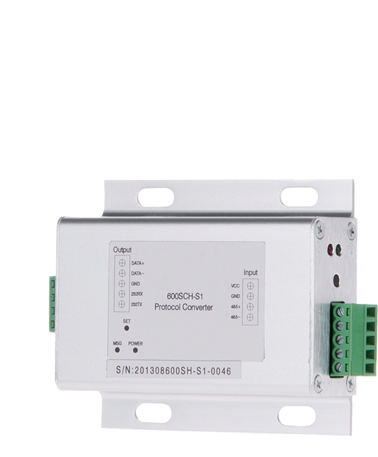 Преобразовывает команды управления внутреннего монитора в сигналы для управления непосредственно оконечными исполнительными модулями домашней автоматики. К одному внутреннему монитору для подключения оконечных модулей SH-62 и SH-63 необходим один модуль конвертера протокола.