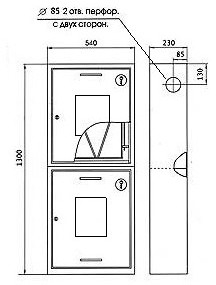 Шкаф для 2-ух пожарных кранов (вентилей), 1-го пож. рукава, 2-ух огнетушителей