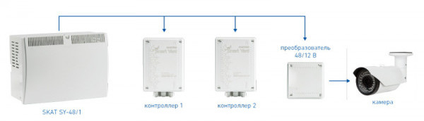 SKAT SY-48/1 - источник бесперебойного питания обеспечивает питание контроллеров системы BASTION Smart Yard стабилизированным напряжением 48 В постоянного тока 1 А и до 3 А при наличии АКБ (АКБ в буфере).