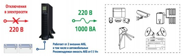 - качественное, бесперебойное, эффективное и надежное питание нагрузок с номинальным напряжением питания 200/208/220/230/240 В переменного тока и суммарной потребляемой мощностью до 1000 ВА
