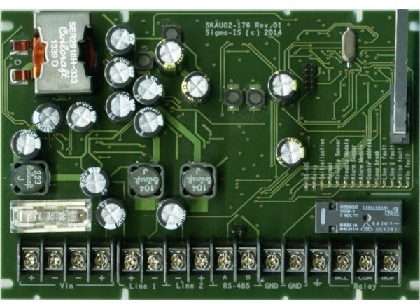СКАУ-02, корпус IP 65 - сетевой контроллер адресных шлейфов сигнализации с использованием извещателей, модулей и оповещетелей только компании "System Sensor" (99 извещателей + 99 модулей) в пластмассовом корпусе, без встроенной консоли управления, со степенью защиты - IP65 входит в состав ИСБ "Индигирка".