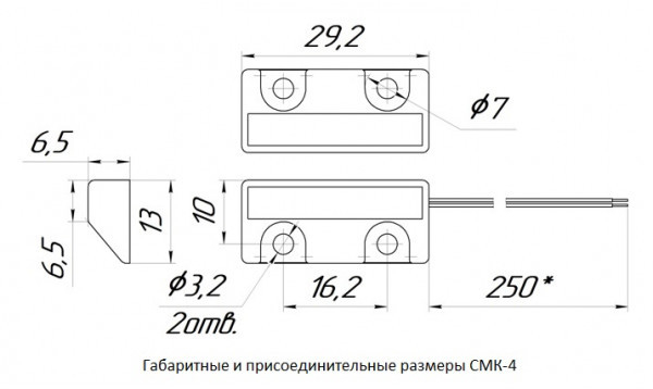 СМК-4 Металл НЗ - извещатель охранный точечный магнитоконтактный с нормально-замкнутого типа (НЗ) контактами, в корпусе из пластика, с проводным выводом в обычной изоляции и длиной (0,25м; другая - под заказ) без защитного рукава и предназначенным для организации устройств типа «ловушка», блокировки дверных и оконных проемов, а также других конструктивных магнитопроводящих (металлических) и магнитонепроводящих (алюминиевых, деревянных и т.д.) элементов зданий и сооружений на закрывание/открывание и смещение с выдачей в шлейф (НО/НЗ) приёмно-контрольного прибора извещения о тревоге путем размыкания/замыкания контактов геркона.