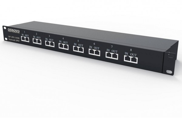 1U устройство грозозащиты для локальной вычислительной сети (скорость до 100 Мб/с), 8 входов (RJ45-мама), 8 выходов (RJ45-мама). Максимальное рабочее напряжение 6V. Номинальный ток пробоя (8/20 мкс) 2,5kA.Максимальный ток пробоя (8/20 мкс) 10kA. Уровень защитного напряжения 50V. Время реакции 1 нс. Монтаж в 19 стойку (1U). Размеры 487x102x44,5мм. Рабочая температура -40 +80 С.