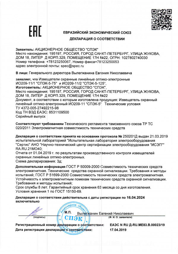 - Извещатель охранный линейный оптико-электронный СПЭК-5-75