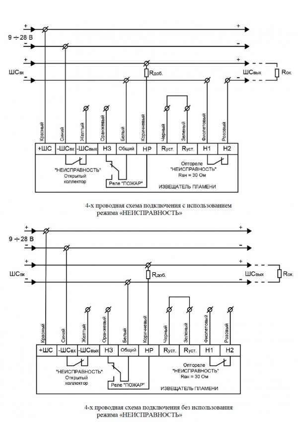 Данный извещатель совместим с любым ППКП, искробезопасные электрические цепи которых имеют параметры, позволяющие подключение данного извещателя.