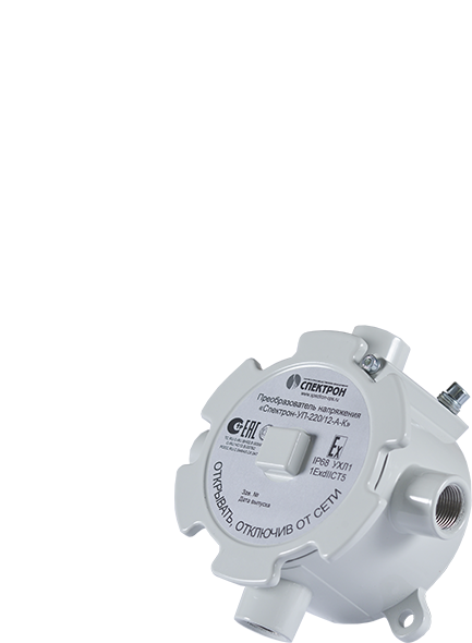 Универсальный стабилизированный преобразователь напряжения 220/12В, 1ЕхdIICT5 корпус из алюминия, IP68. Входное напряжение ~220В. Выходное напряжение -12В, 0,5 А, - 60 до 85 C.