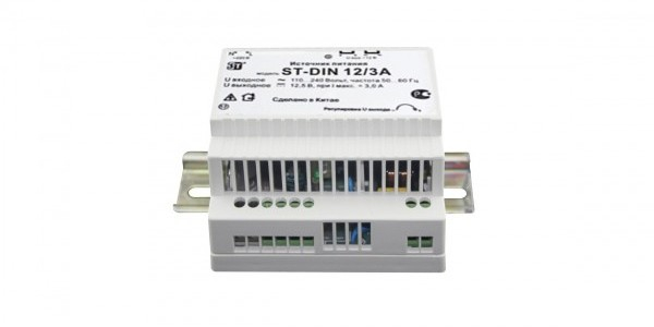Стабилизированный источник питания на DIN-рейке для питания аппаратуры напряжением 12В. 220В 12,5В Ток нагрузки рабочий/макс 3А Ток ограничения при КЗ 3,5А Защита от КЗ, универсальное крепление на DIN рейку или плоскую поверхность, регулировка вых напряжения 11,2 14,2В. раб. t. - -10...+45 C Габариты 92х87х54,5мм, 0,247кг Комплектация источник питание, DIN-рейка, паспорт, коробка.