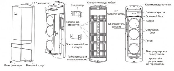 ST-PD103BD-MC - извещатель охранный линейный оптико-электронный 3-х лучевой активный в составе блоков: излучателя и приёмника предназначен для обнаружения проникновения через периметр охраняемого объекта и формирование извещения о тревоге путем переключения (1 НО и НЗ) выходных контактов оптоэлектронного реле.