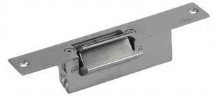 Указанная электромеханическая защелка используются совместно с механическими замками с косым ригелем и врезается в дверной косяк вместо стандартной ответной части.