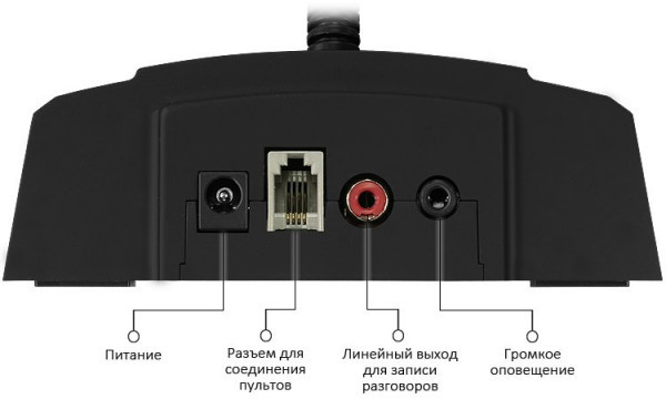 - линейный аудиовыход для записи переговоров с разъёмом типа «тюльпан» (RCA);