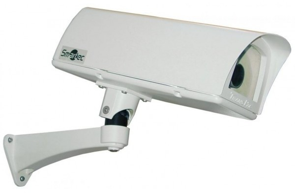 Термокожух (100х90х270 мм) с питанием Hi-PoE с 1 обогревателем, солнцезащитным козырьком и кронштейном настенным (полная сквозная проводка) фронтальное открывание верхней части корпуса от -40 С до +50 С IP67 внутренний преобразователь Hi-PoE/12VDC, 2.5A