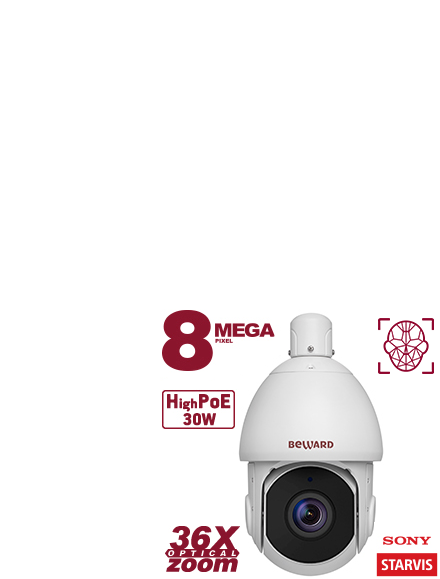 8 Мп, 1/1.8'' КМОП SONY Starvis, купольная скоростная 0.1-250°/сек, 0.006 лк (день)/0.0005 лк (ночь), 2xWDR до 120 дБ, 3 потока H.265/H.264/MJPEG, Zoom 36x оптич., 3840x2160, 30к/c, АРД, вариф. ИК-подсветка (до 300м), 24В (AC)/High PoE, microSDXC (до 256 ГБ), IP66, от -40 до +60°С, обогрев, EIS, встроенная видеоаналитика, детекция лиц, SIP, функция автослежения