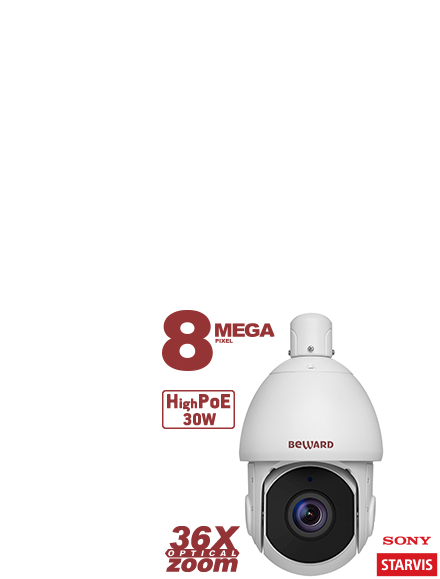 8 Мп, 1/1.8'' КМОП SONY Starvis,купольная скоростная 0.5-240°/сек, 0.006 лк (день)/0.0005 лк (ночь),2xWDR до 120 дБ, 3 потока H.265/H.264/MJPEG, Zoom 36x оптич., 3840x2160, 30к/c, АРД, вариф. ИК-подсветка (до 300м), 24В (AC)/High PoE, microSDXC (до 256 ГБ), IP66, от -40 до +60°С, обогрев, EIS, встроенная видеоаналитика, SIP, функция автослежения