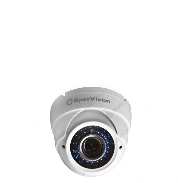 Видеокамера цветная купольная Spezvision, К-108 B/W Var, 1/2.7 Cmos Omnivision OV2710, DSP NVP2441H AHD 2Mpix , 0,01/0,005 lux (F1.2), 1920x1080, PAL, День/Ночь. Подсветка ИК 36 LED-60 , дальность освещения до 30 метров. DWDR, 3DNR, ICR, BLC, OSD. 0 + 50 C. Объектив f= 2,8-12 мм. 12 В/330mA. Цвет Черный или Белый.