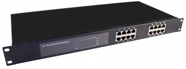 PoE коммутатор Fast Ethernet на 16 портов. Порты 16 x FE (10/100 Base-T) с поддержкой PoE (IEEE 802.3af/at). Мощность PoE на порт - до 30W. Суммарная мощность PoE до 240W. Питание AC100-240V (250W). Встроенный БП. Размеры 480 x200 x 44 мм. Рабочая температура 0...+50 гр. С.