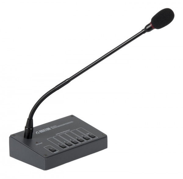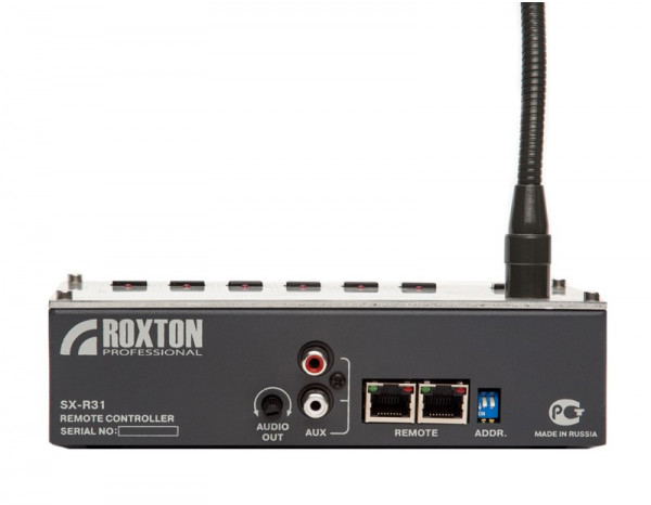 ROXTON SX-R31 - микрофон настольный с селектором каналов на 5 зон (выбор зон, группы зон, всех зон), функцией - микшера для комбинированных систем Roxton SX-240/480/480N, включением сигнала "Гонг" используется для построения систем речевого оповещения и музыкальной трансляции.