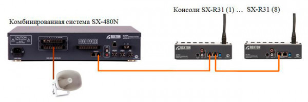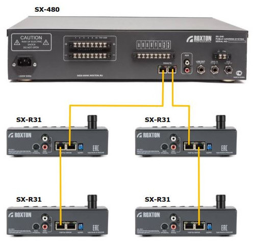 Для повышения надежности системы, возможно подключение по кольцу, используя входы блока Roxton SX-240/480/480N.