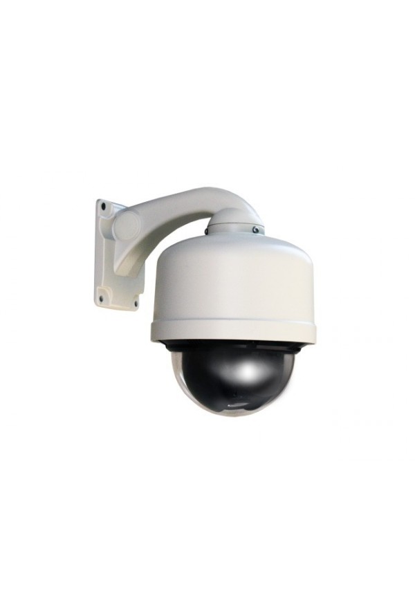 Видеокамера купольная, скоростная, день/ночь, 650/750 ТВЛ, 1/4 Sony Double Scan II 960 H, оптический ZOOM 37x, цифровой ZOOM x12, f=3,5-129.5 мм, F 1.5 АРД, 0,001 / 0,00001 люкс (в режиме накопления заряда DSS Sens-up), NTSC 520K/480K / PAL 610K/570К, механический ИК-фильтр. Угол поворота по горизонтали 0-360 , по вертикали 0-92 (автопереворот 180 ), скорость по горизонтали 360 /сек, скорость по вертикали 92 /сек, интерфейс RS-485 D-MAX, Pelco-P, Pelco-D,S-T тревожные вход/выходы 4/1релейный выход, 250 предустановок. BLC, HLBLC, WDR, DNR, AWB, AES, 3DNR, OSD-меню, автофокусировка, БП AC24V, кронштейн в комплекте (крепление на стену), уличное исполнение, встроенная система терморегуляции, рабочая температура -40...+50 С IP66. Габариты 216.8x216.8х289.2 мм. Страна-производитель - Корея.