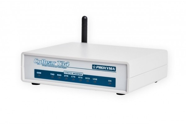 GSM-модем CyBear T34-GSM с поддержкой диапозонов GSM 900/1800/1900 (автоматическим поиском и переключением на канал), GPRS multi-slot Class 10, SMS, USSD, CSD, TCP/IP, PPP.