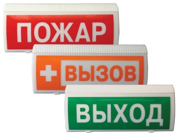 Табло светового оповещения, встроенные батареи, внешнее питание 9 24В, надпись ВЫХОД .