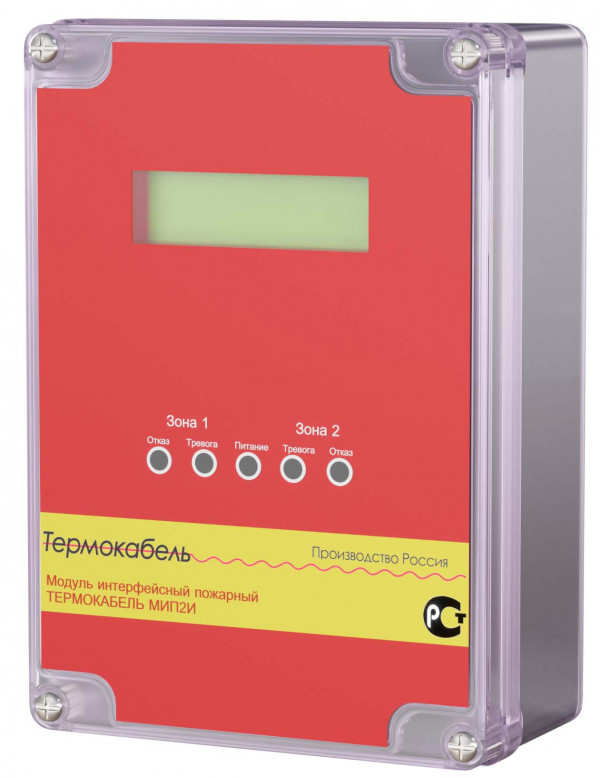 Модуль интерфейсный пожарный (блок обработки) ТЕРМОКАБЕЛЬ МИП2И с индикацией точного места возгорания с функцией подключения одного и двух шлейфов термокабеля (чуствительного элемента) ИП-104/ИПТЛ ProReact ТН, поддерживает работу протокола MODBUS, ЖК-дисплей с индикацией. В комплекте поставки 3 муфты монтажных (уплотнитель)ТН-1000N