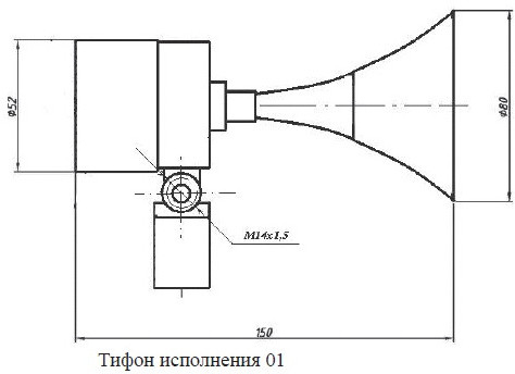 Тифон-1П-01-Н - оповещатель звуковой пневматический (под давлением воздуха от 0,35 до 1 МПа) в корпусе из нержавеющей стали (12Х18Н10Т) предназначен для выдачи звуковых сигналов тревожной сигнализации в системах пожарной и технологической сигнализации, подачи основных и маневровых звуковых сигналов в железнодорожном транспорте, подачи звуковых сигналов предупреждения столкновений судов на речном и морском транспорте.