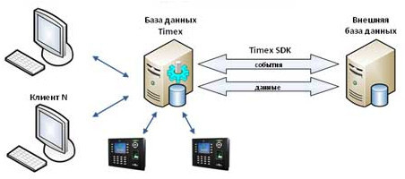 В случае необходимости интеграции данных учета времени с системой управления предприятием, необходимо использовать модуль интеграции Timex SDK.