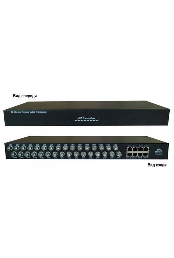 Приемопередатчик 32-х видеосигналов по витой паре на 600 м., 32 канала под BNC и 32 канала под клемму.