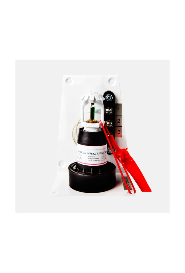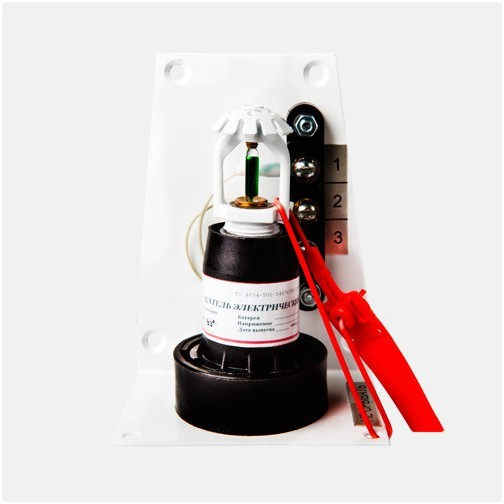 ТПЭ-1Б на 93C - тепловой пускатель электрический с элементом питания предназначен для выдачи или пропуска электрического импульса при повышении температуры окружающей среды выше температуры срабатывания (93C0) теплового замка спринклерного оросителя, установленного в пускателе и применяется в качестве побудительного устройства для запуска генераторов огнетушащего аэрозоля.